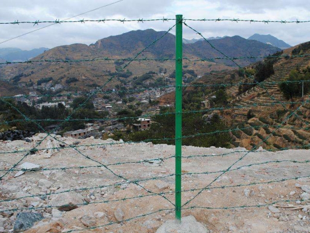4.刺繩鉤是嵌在立柱內(nèi)部,不會掉,鋼筋焊接的有可能開焊